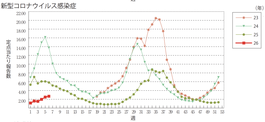 新型コロナの患者数は例年に比べると少なく、流行は落ち着いています